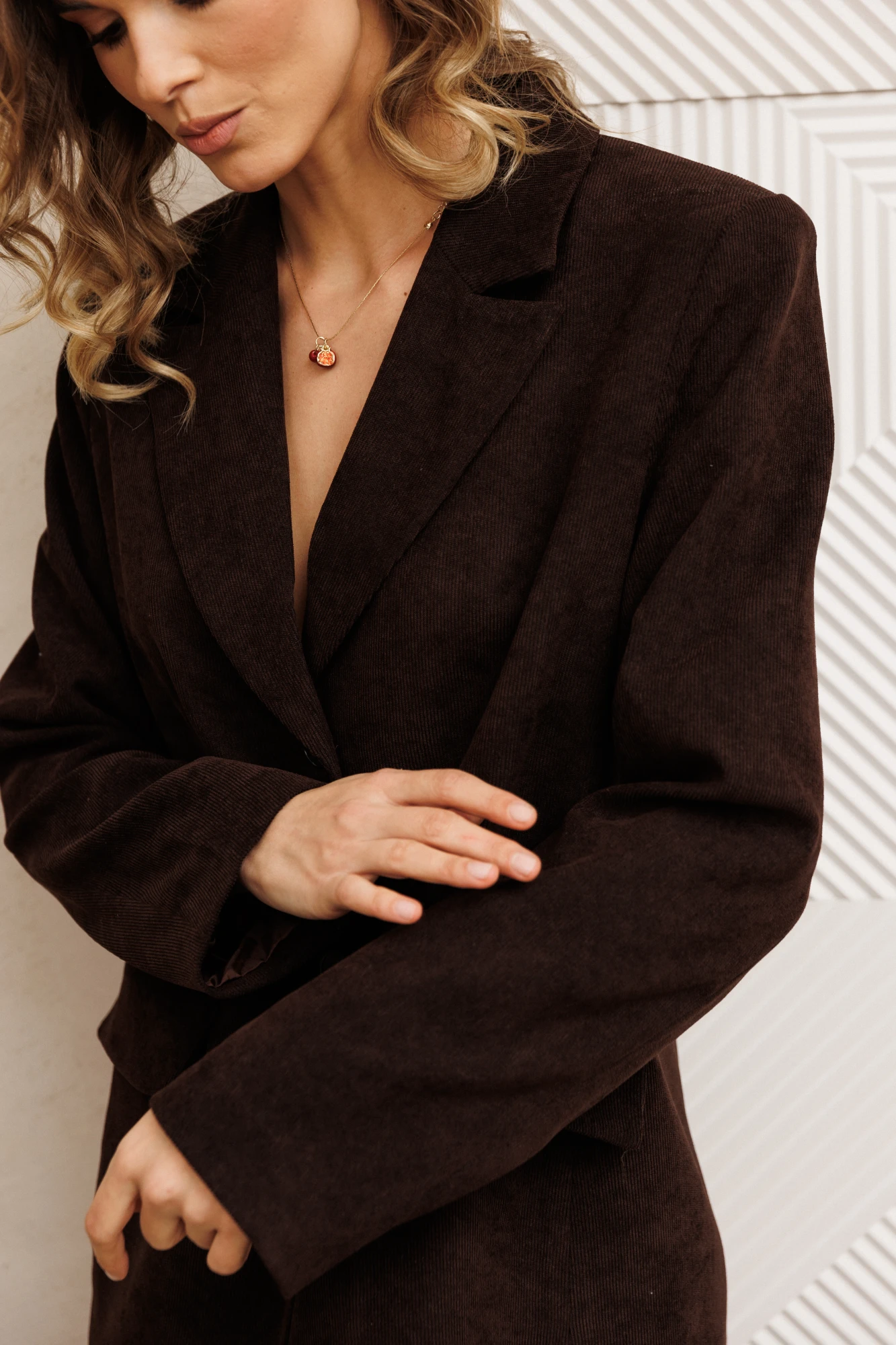Жакет полуприлегающего силуэта. Застежка однобортная на две пуговицы, воротник пиджачного типа. Перед с талиевой вытачкой, рельефом и декоративным клапаном. Спинка с рельефами из проймы и средним швом. Рукав втачной двухшовный. Жакет на подкладке. Длина жакета - 68 см, длина рукава жакета - 60 см.