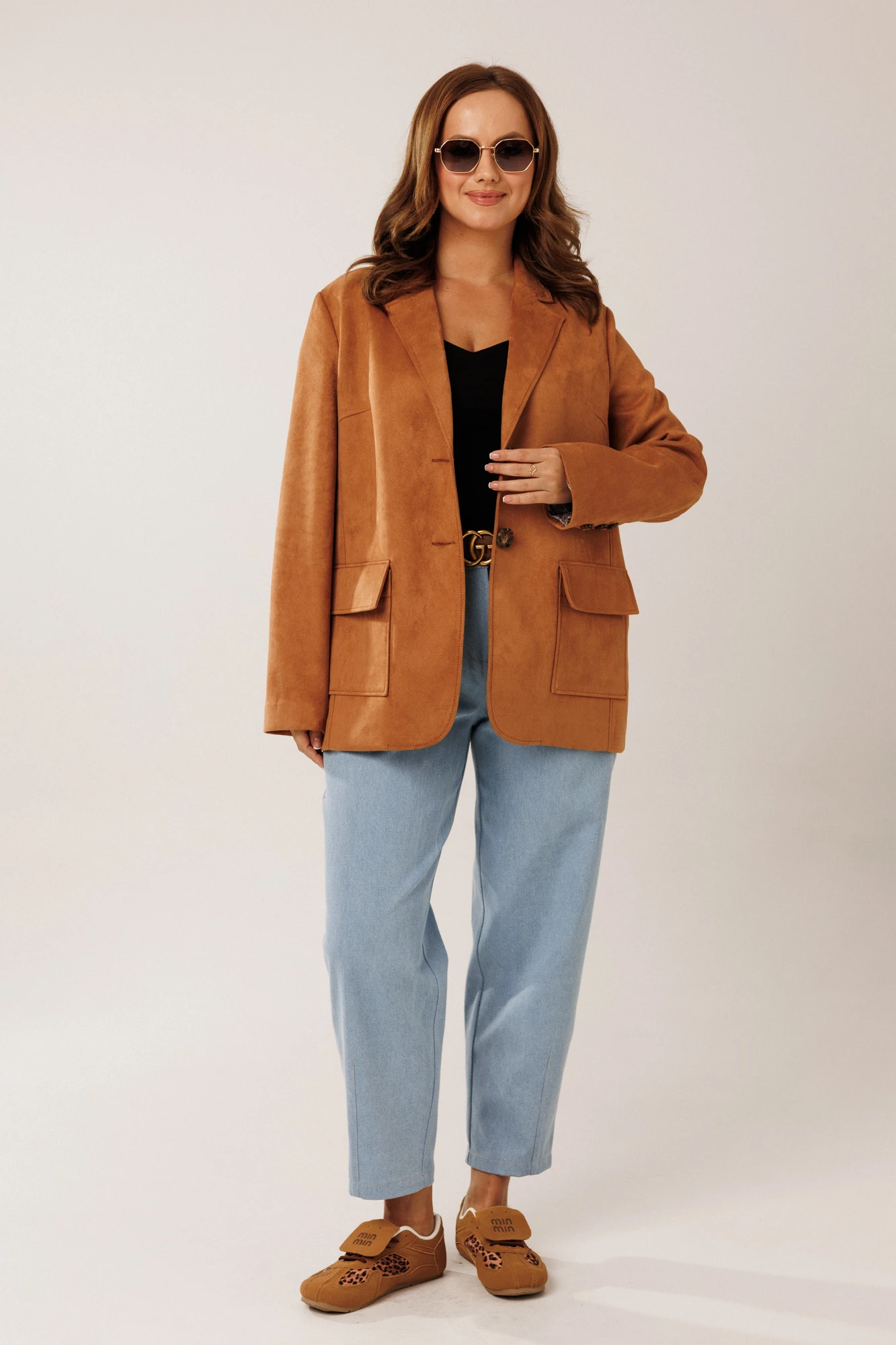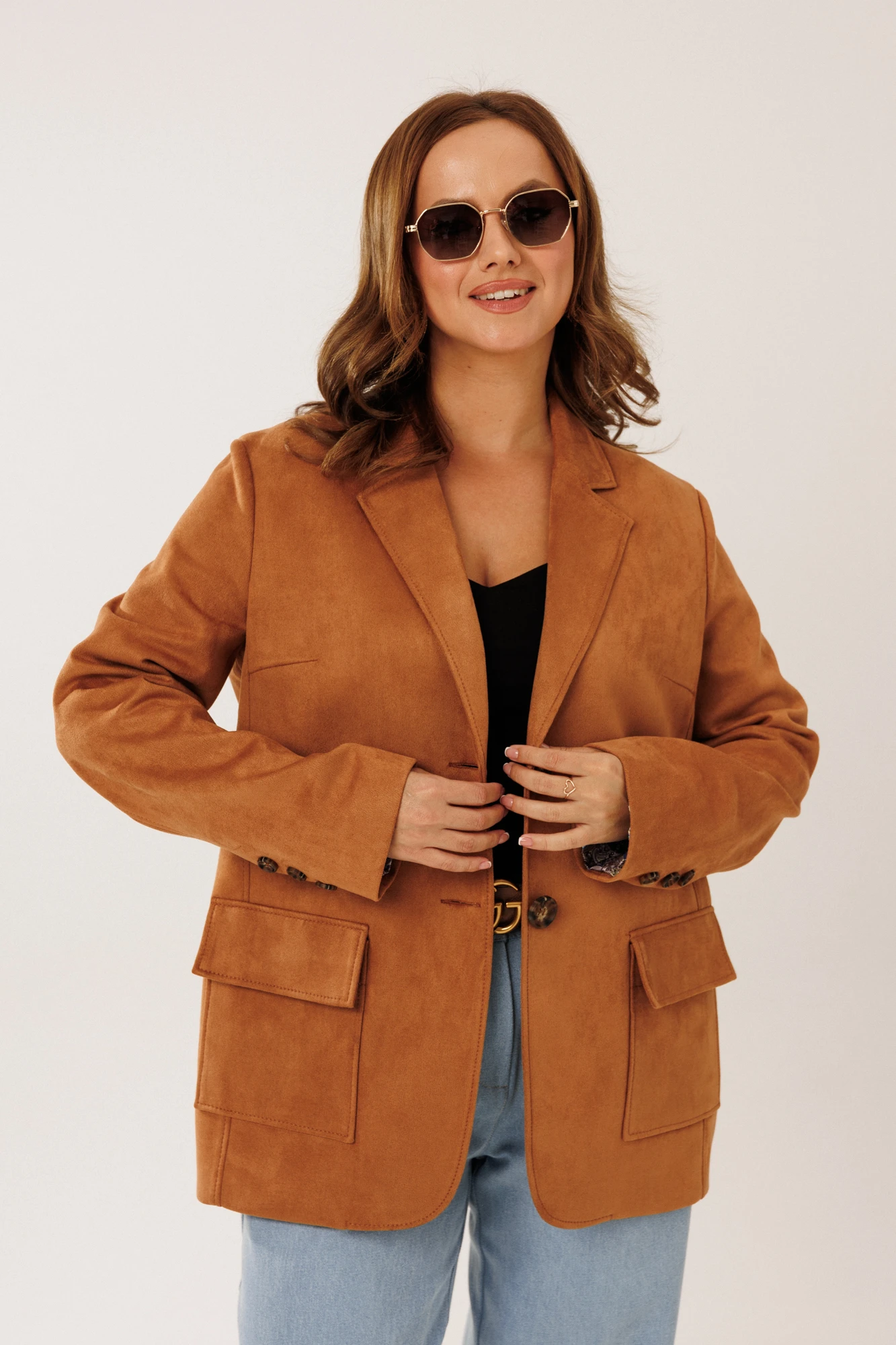 Жакет женский прямого силуэта на частичной подкладке. Жакет однобортный, длинной до середины бедра. Полочка с отрезными бочками и вытачкой. На нижней части полочки настрочены накладные карманы с клапаном. Спинка с отрезными бочками и отрезной кокеткой Рукав втачной, полной длинны. По низу рукава обработана имитация шлицы с отделочными декоративными пуговицами. Воротник в жакете втачной с отрезной стойкой и лацканами. Линия низа борта полочки скруглена. Жакет застегивается на петли пуговицы. По воротнику, лацкану, борту, карманам и швам спинки прострочены отделочные строчки. Полочки, кокетка спинки и рукава с контрастной подкладкой. Декоративные элементы и фурнитура могут отличаться от заявленных на фото. Цвет материала может отличаться по тону в зависимости от настроек вашего монитора!