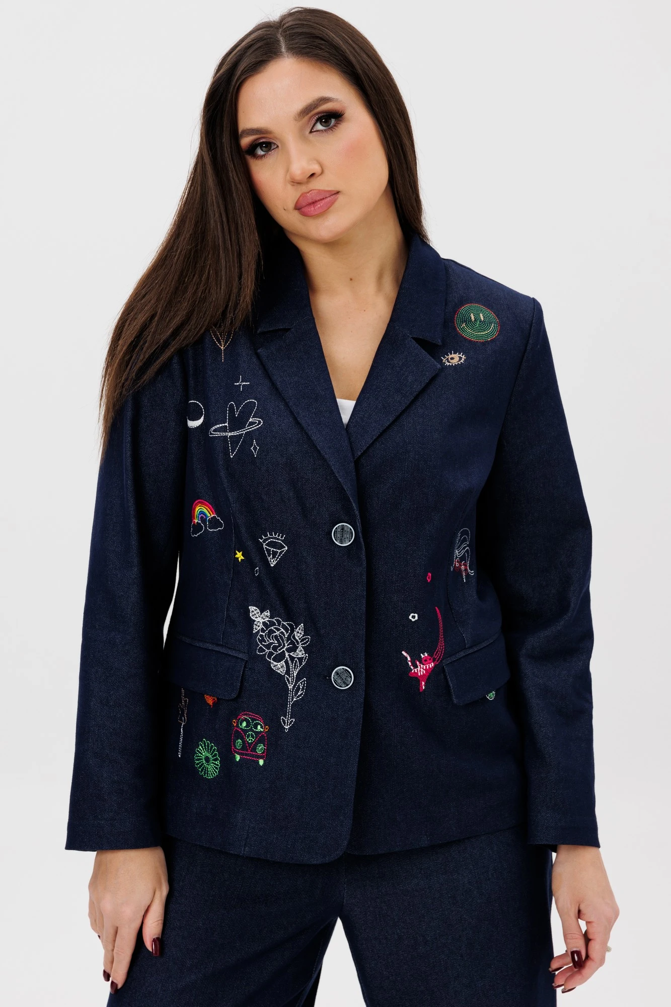 Джинсовый жакет (пиджак) с вышивкой Ma Cherie 1147 темно-синий