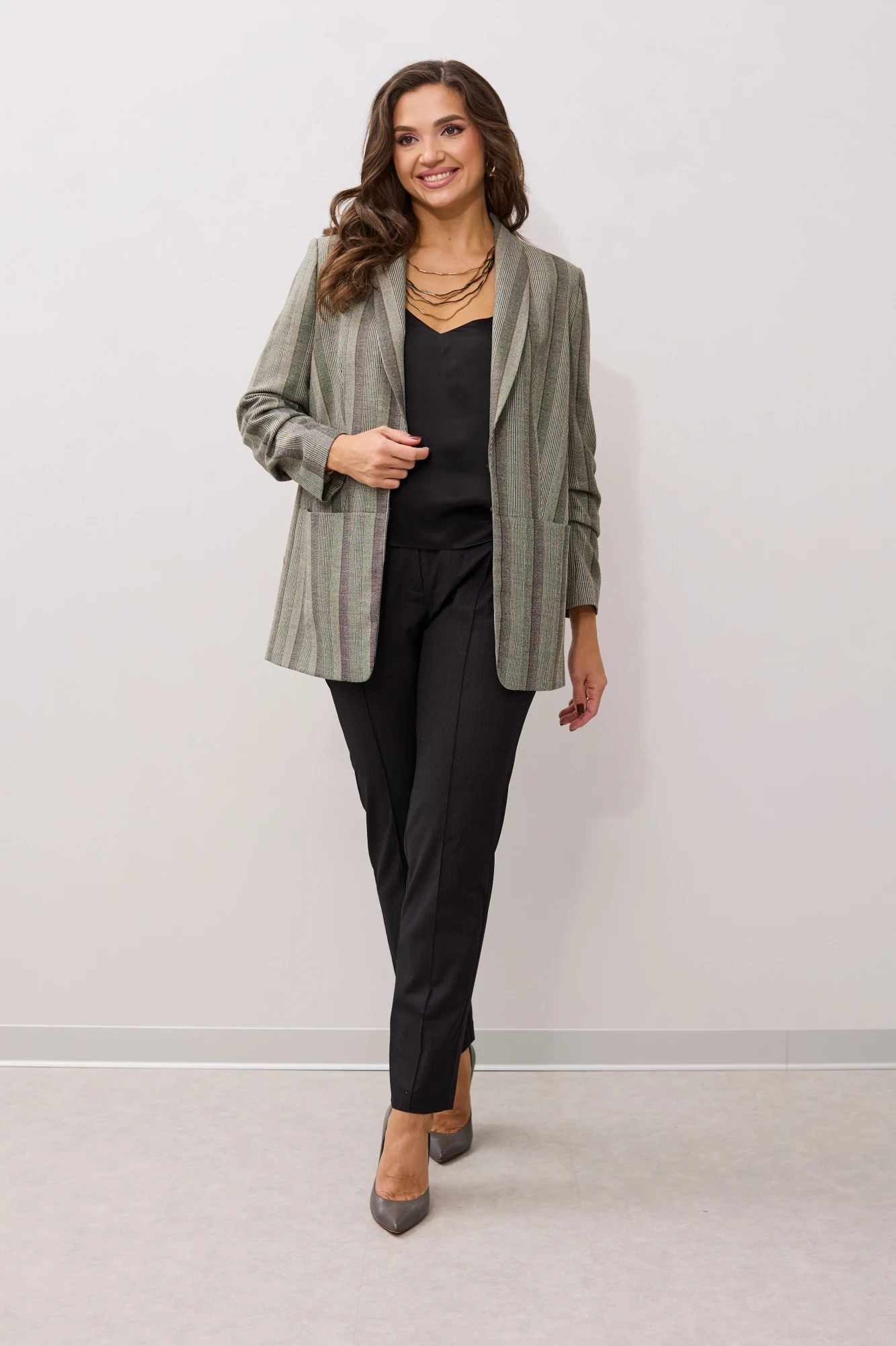 Жакет (пиджак) в полоску MALI 124-038 полоска хаки