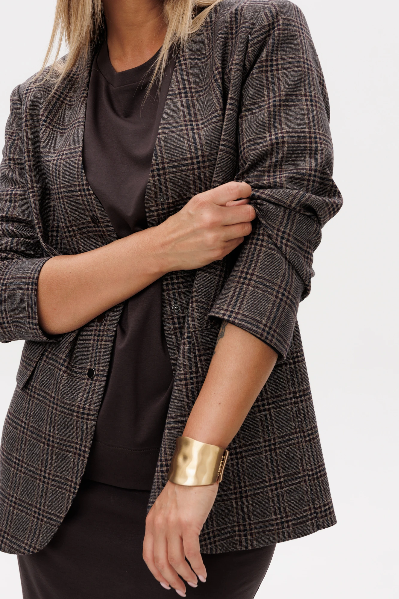Жакет прямого силуэты на подкладке. По переду прорезные карманы с клапаном. Застежка на кнопках. Рукав втачной.