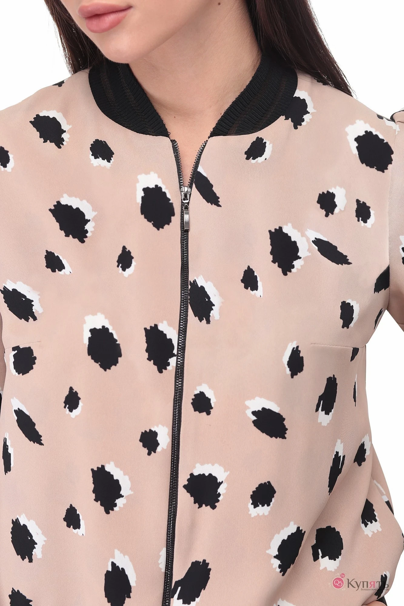 Облегченный бомбер с декоративной отделкой из довяза по горловине, рукаву и низу изделия.