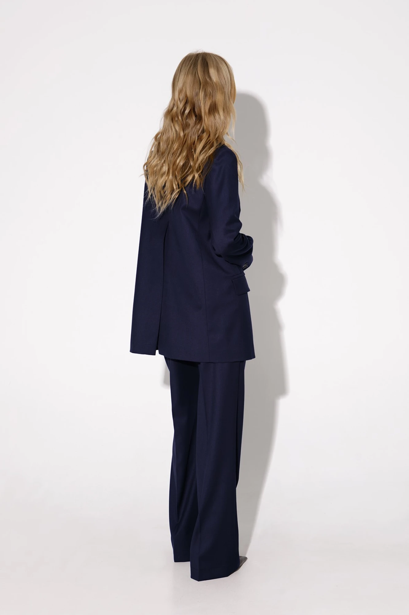 Текстильный жакет трапециевидного силуэта с высокой шлицей по спинке. Детали: свободный покрой, пиджачный воротник, талиевые вытачки, функциональный нагрудный карман, прорезные карманы с клапанами, застежка на пуговицы, спинка со средним швом и высокой шлицей, рукава втачные двухшовные, жакет на подкладке. Длина жакета по спинке около 74/76 см, длина рукава около 61 см.