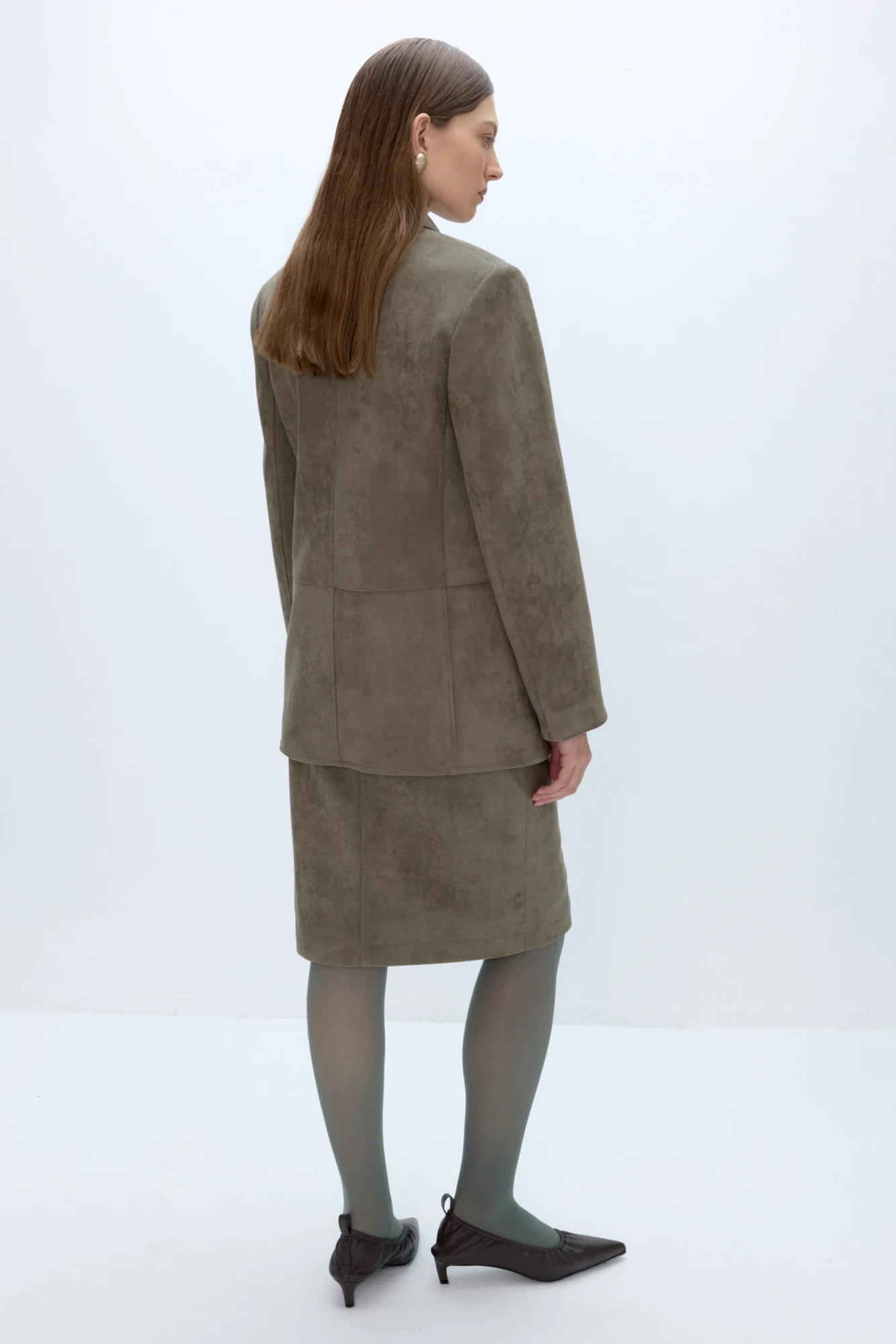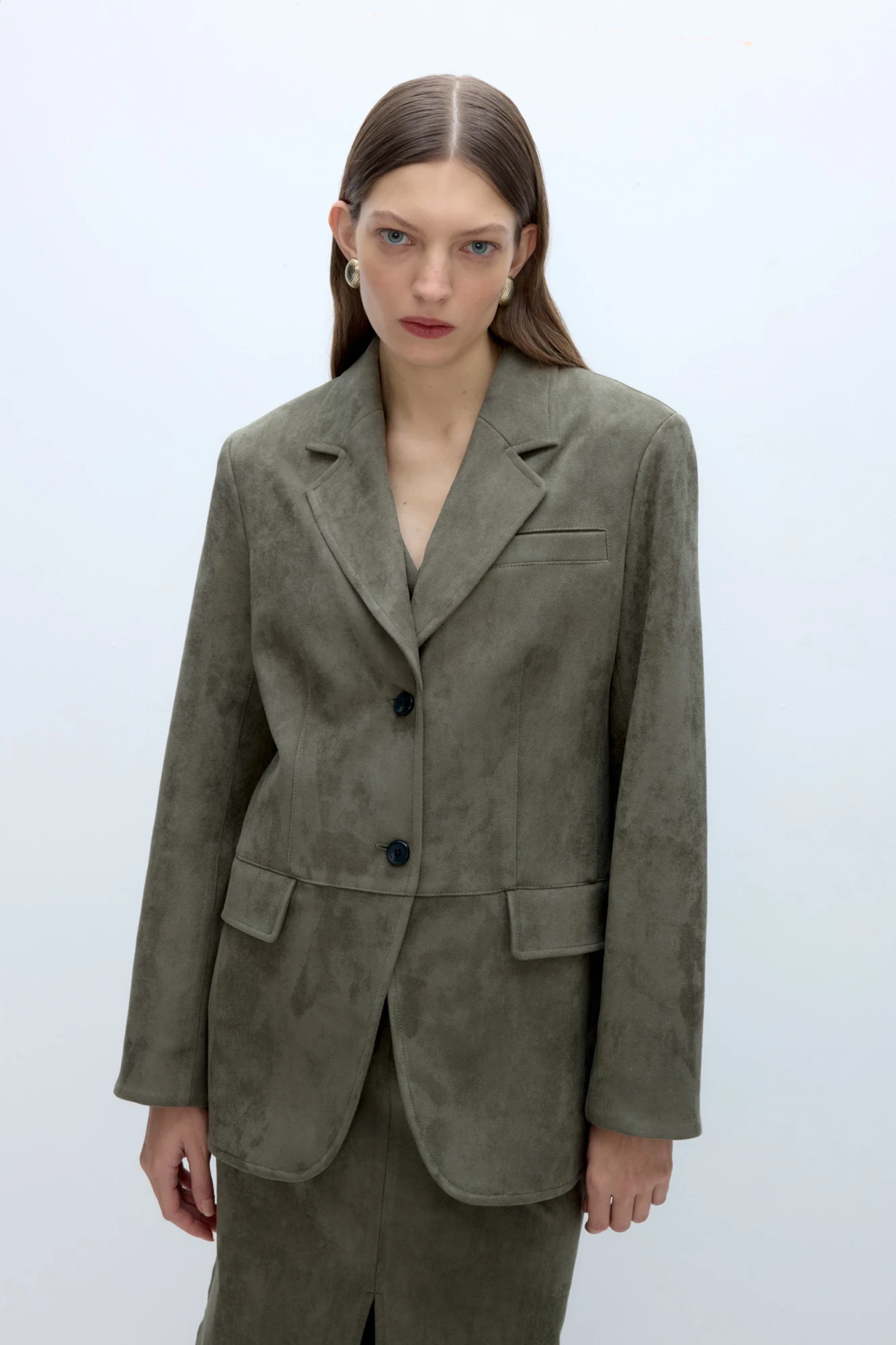 Детали: прямой силуэт, пиджачный воротник, функциональные карманы, застежка на петли и пуговицы, рукава втачные двухшовные, жакет на подкладке
