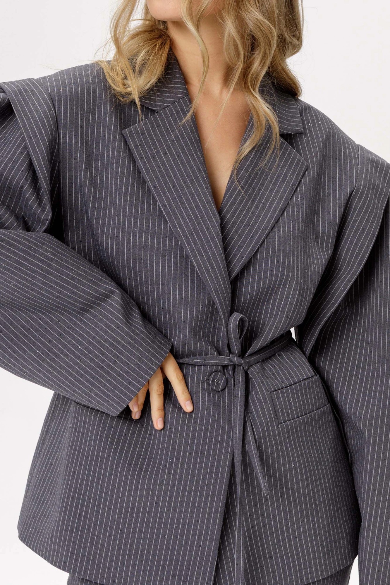 Оверсайз жакет из костюмной ткани в тонкую полоску со стразами (приобрести брюки с фото можно по арт. 6517).