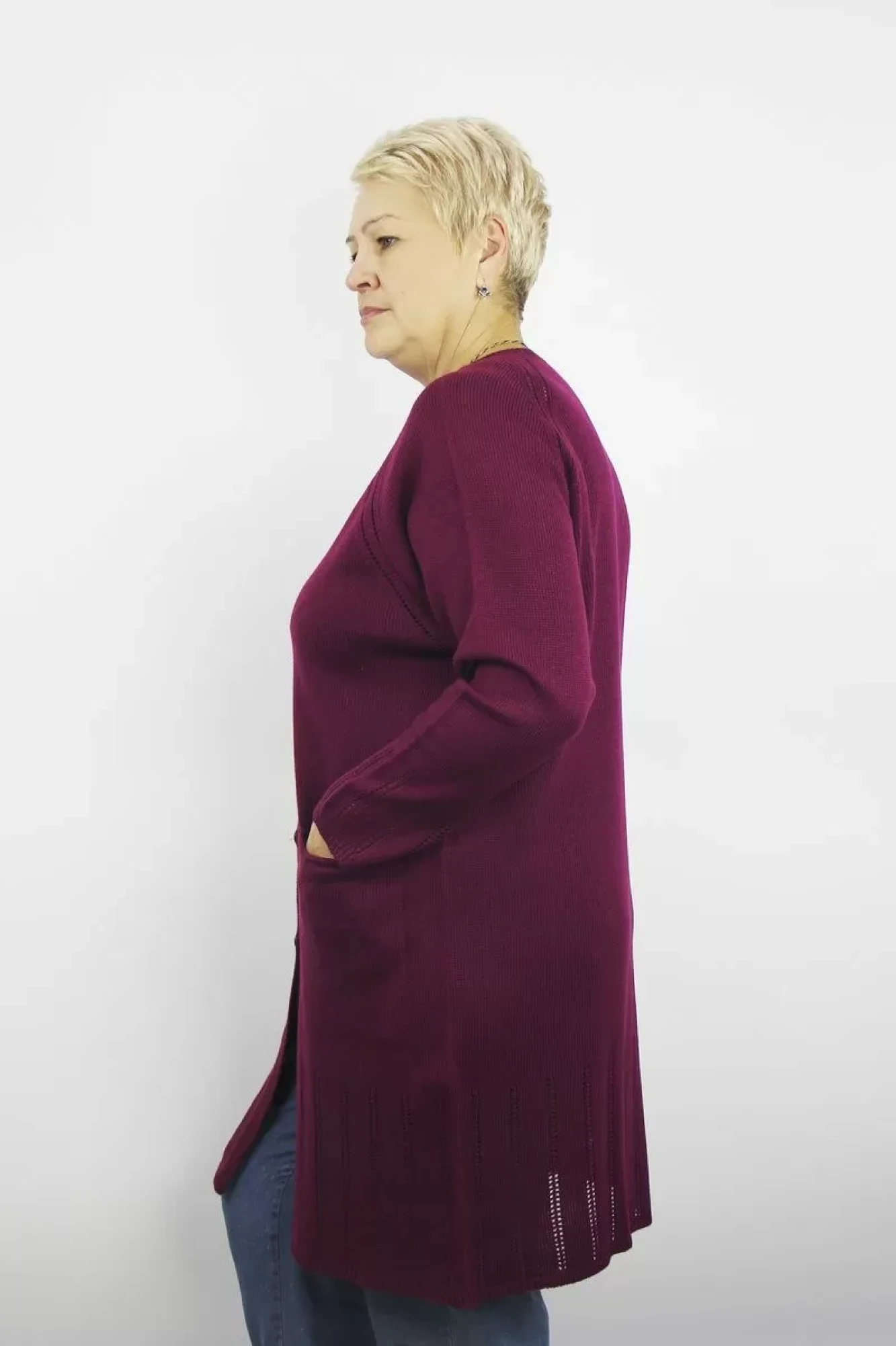 Жакет второго слоя одежды, регулярный, прямого силуэта, с длинным рукавом "реглан". Край борта обработан бейкой. Карман цельновязаный, высота 19,0+-0,8 см, ширина 18,0+-0,8 см. Застежка на петли и двухпрокольные пуговицы под покраску в цвет, тон изделия. Количество пуговиц - 6+1 шт.