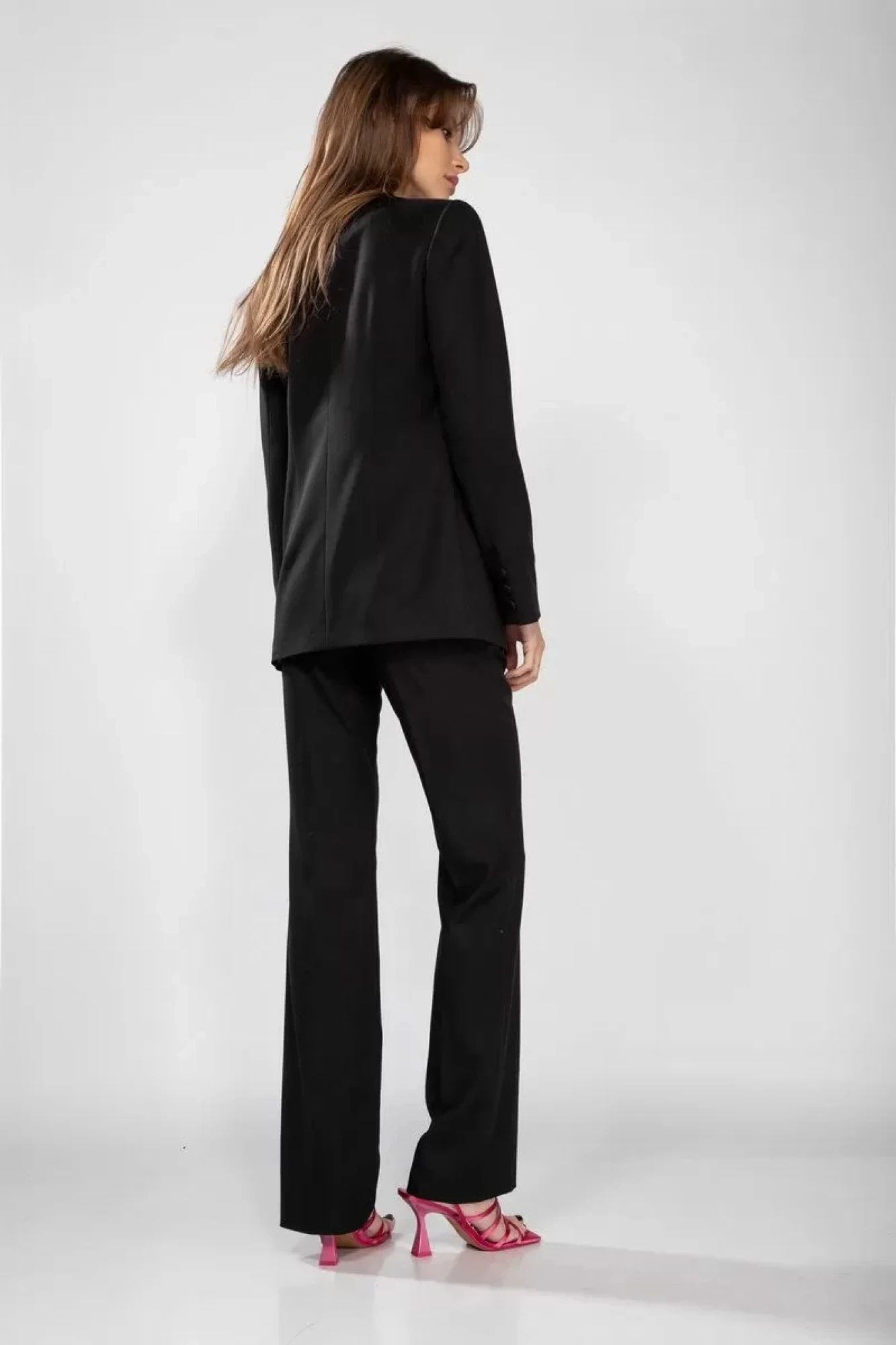 Жакет на подкладке полуприталенного силуэта с прорезными карманами в рамку по переду. Воротник втачной-стойка, застежка по переду на одну петлю-пуговицу, борт скошенный к низу, рукав двухшевный с тремя отделочными пуговицами, спинка жакета разрезная по центру с талиевыми выточками. Жакет можно сочетать как с классическими вещами, так и разбавить им стиль Casual.Длина по спинке 69 см, рукав 65 см