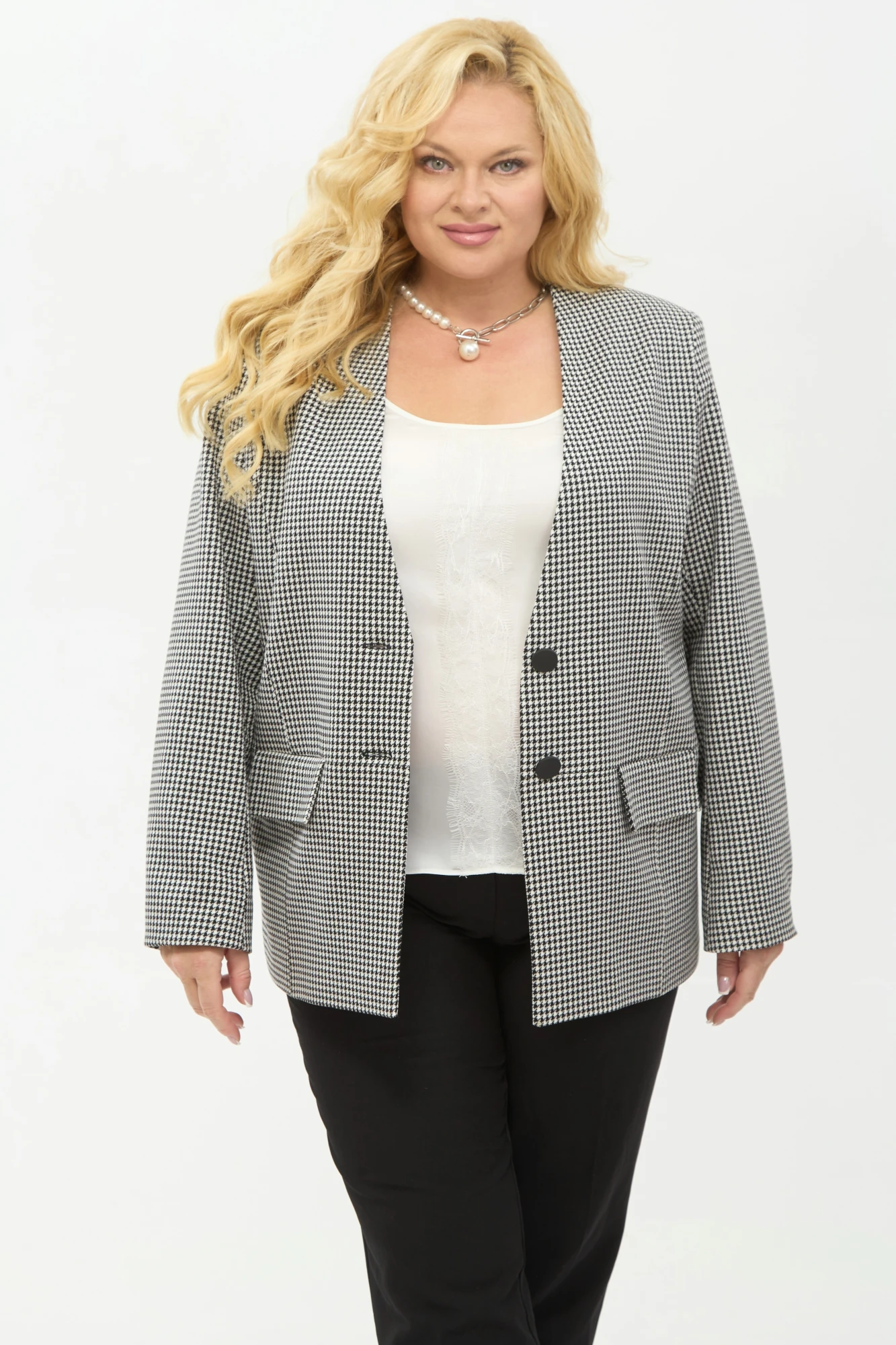 Жакет (пиджак) YOUR SIZE 2265 Черно-белый в «гусиную лапку»