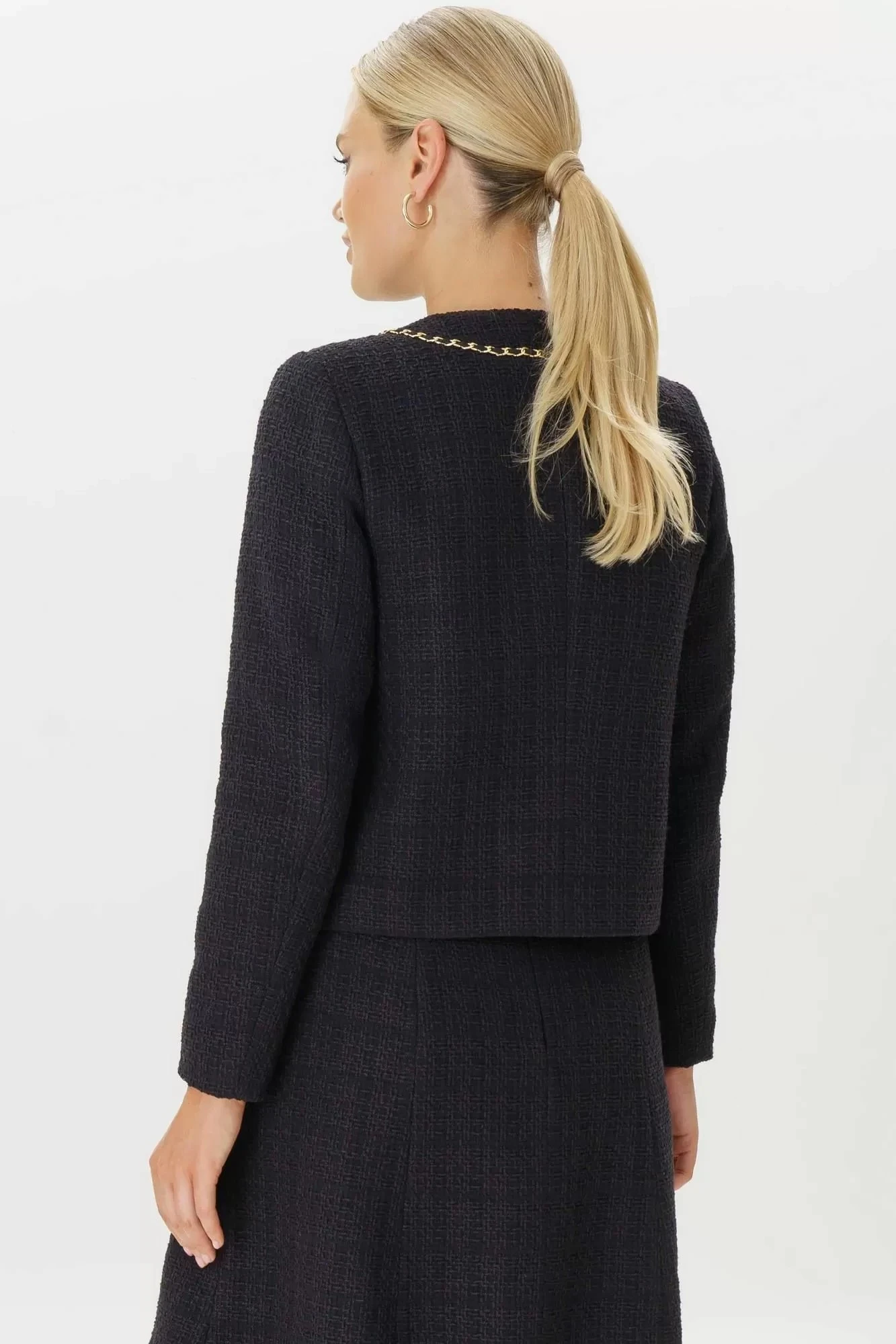 Шикарный черный жакет с цепью, декорированный в стиле Шанель, придаст вашему образу изысканность и элегантность.