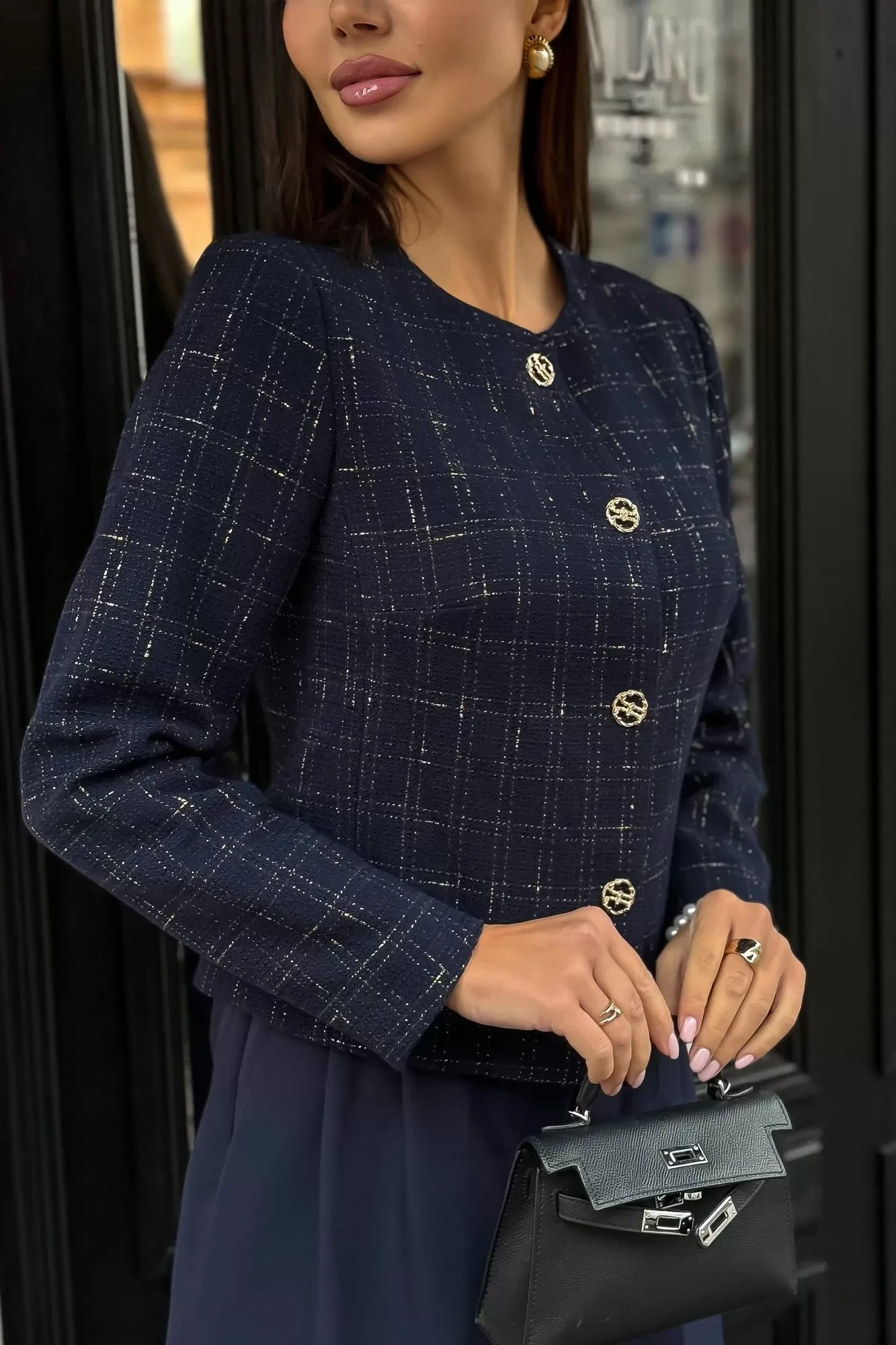 Длина по среднему шву спинки - 52,0 см (±2,0 см), Ширина на уровне глубины проймы - 60,0 см (±1,0 см), Ширина на уровне линии талии - 57,5 см (±1,0 см), Длина рукава - 60,5 см (±1,0 см), Ширина рукава вверху - 21,5 см (±1,0 см), Ширина рукава по низу - 14,5 см (±0,5 см), Длина плеча - 12,2см (±0,5 см).