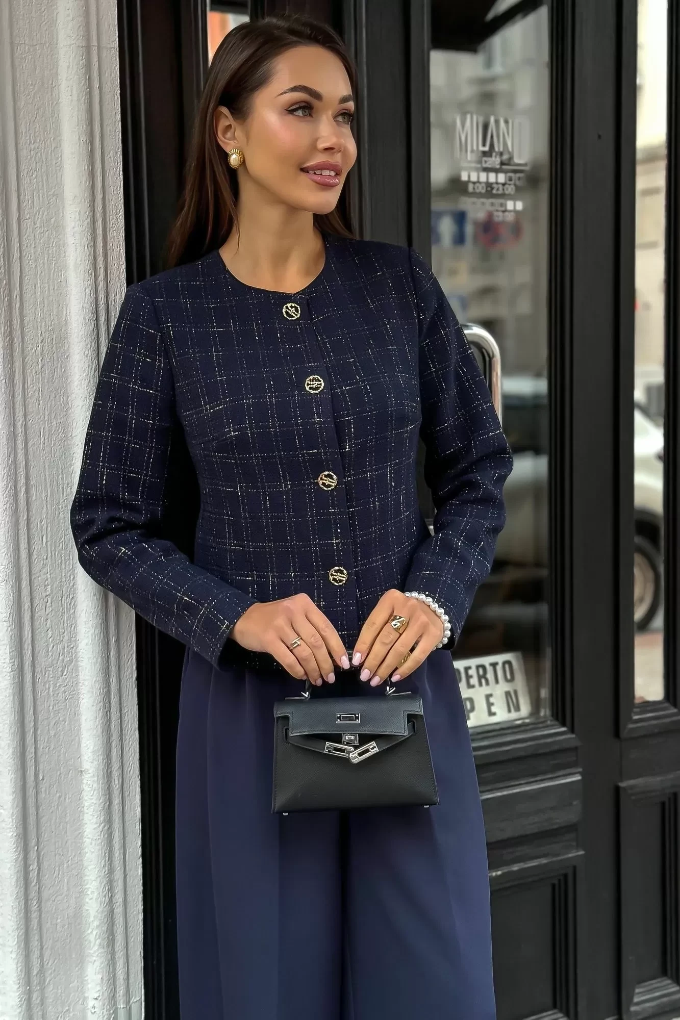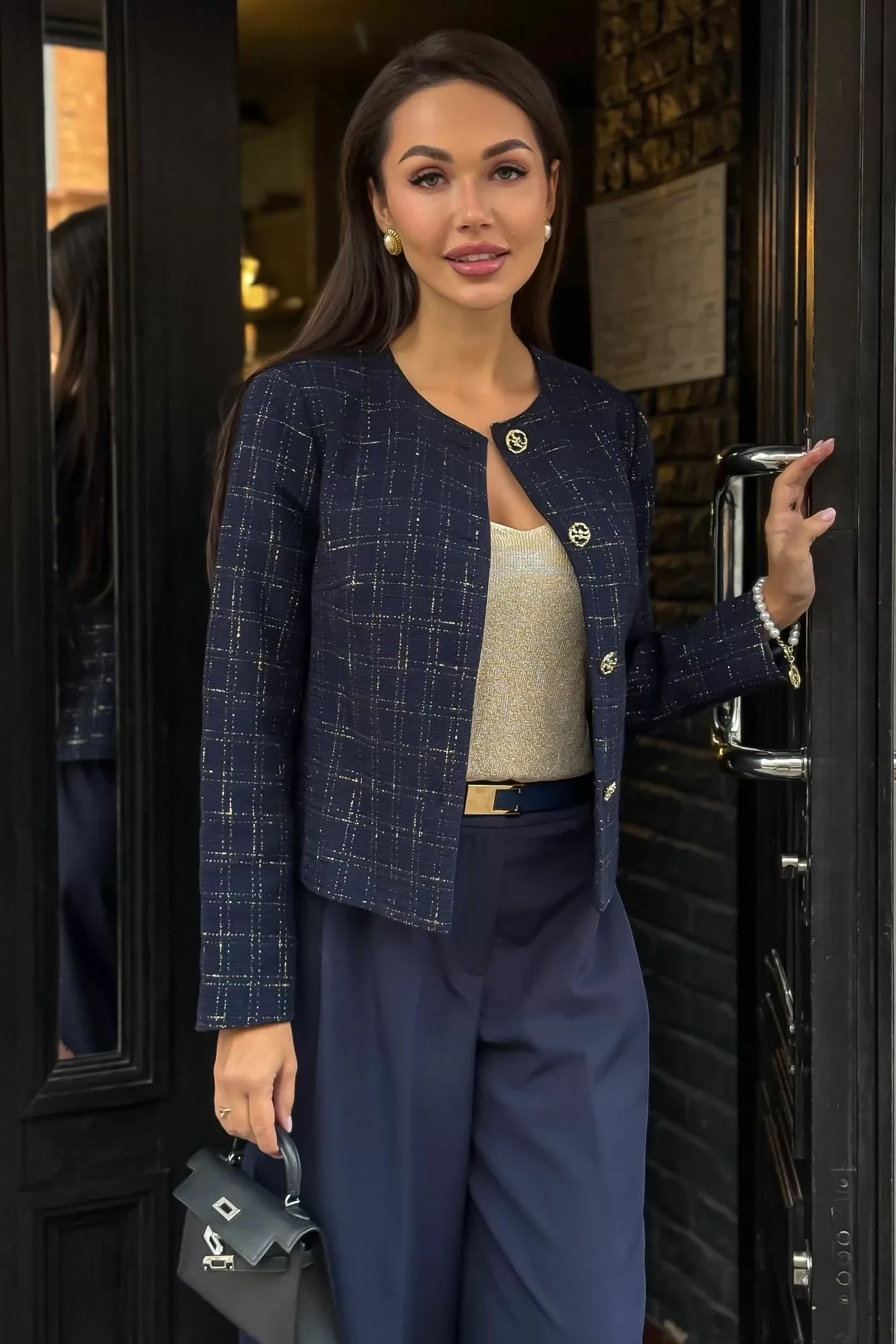 Длина по среднему шву спинки - 50,0 см (±2,0 см), Ширина на уровне глубины проймы - 50,0 см (±1,0 см), Ширина на уровне линии талии - 46,0 см (±1,0 см), Длина рукава - 60,0 см (±1,0 см), Ширина рукава вверху - 17,0 см (±1,0 см), Ширина рукава по низу - 13,0 см (±0,5 см), Длина плеча - 11,3 см (±0,5 см).