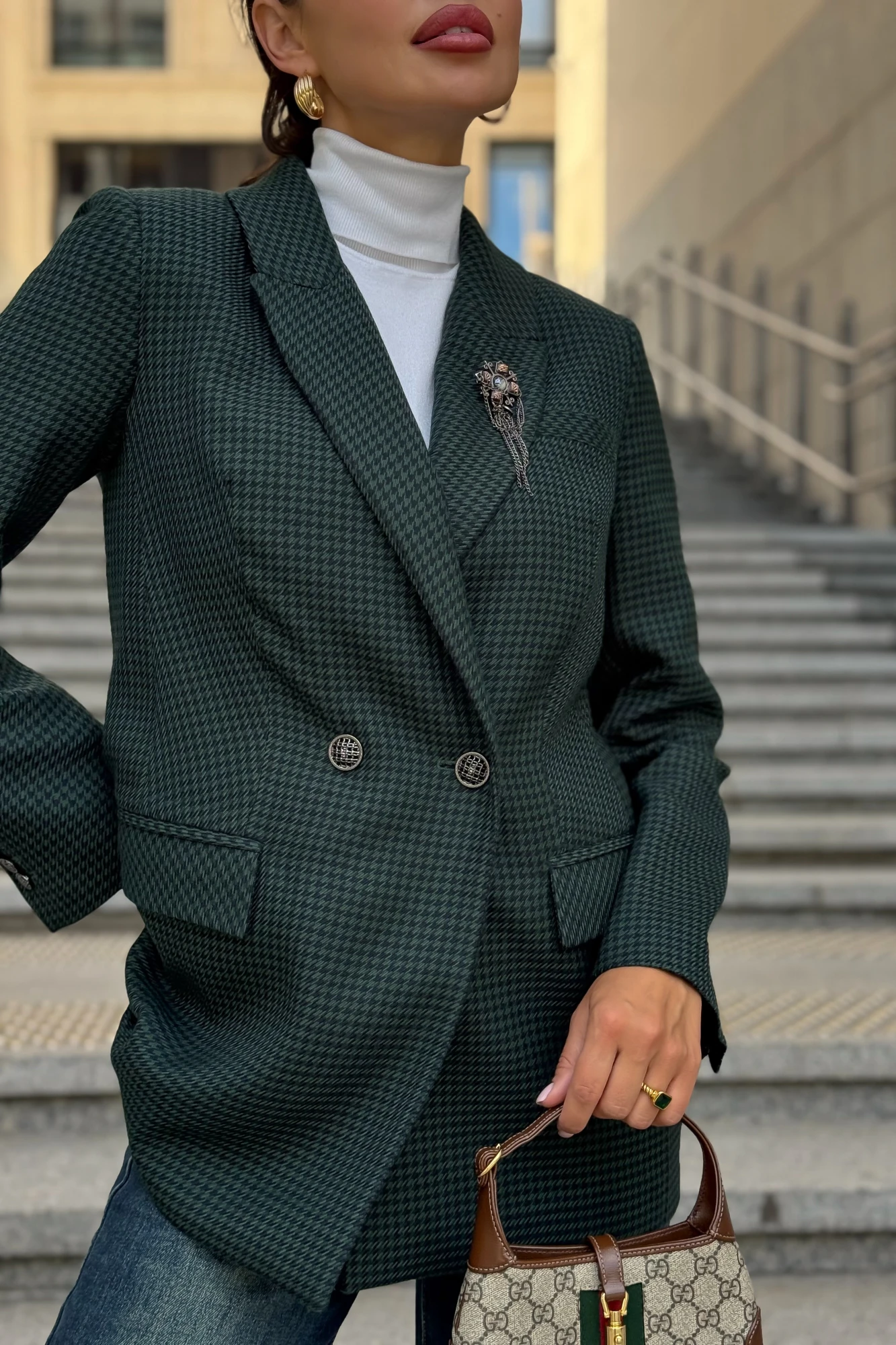 Длина жакета по среднему шву спинки – 74,5см (±2,0 см), Ширина на уровне глубины проймы – 58,0 см (±1,0 см), Ширина на уровне линии талии – 57,0см (±1,0 см), Ширина на уровне линии бедер – 63,0 см (±1,0 см), Длина рукава – 61,0 см (±1,0 см), Ширина рукава вверху – 20,5 см (±1,0 см), Ширина рукава внизу - 14,5 см (±0,5 см), Длина плеча – 12,2 см (±0,5 см).