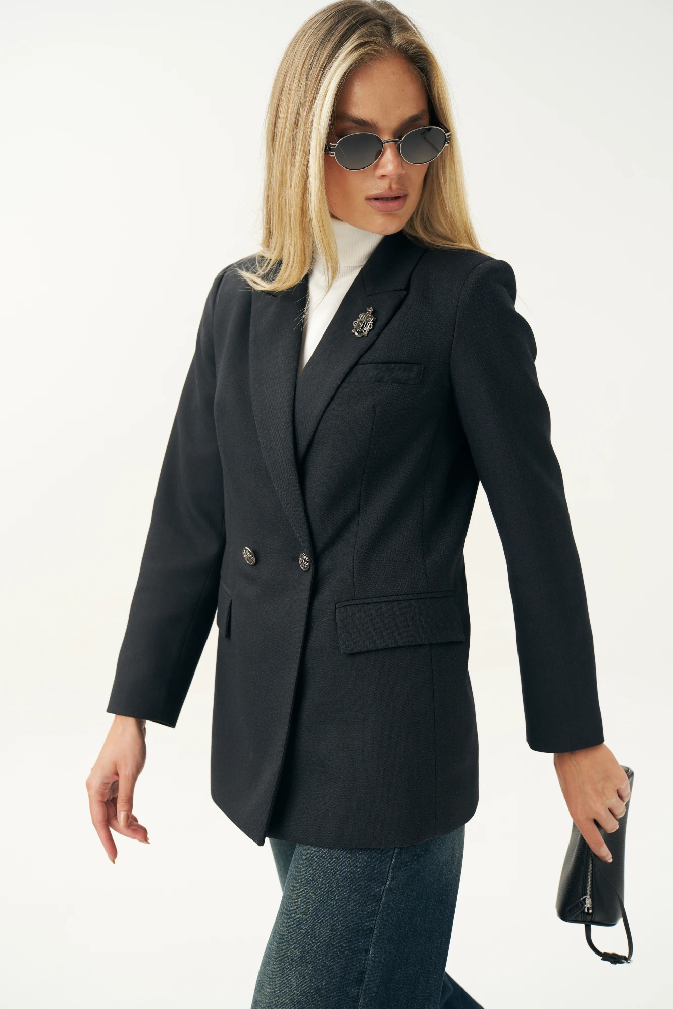 Длина жакета по среднему шву спинки – 74,5см (±2,0 см), Ширина на уровне глубины проймы – 58,0 см (±1,0 см), Ширина на уровне линии талии – 57,0см (±1,0 см), Ширина на уровне линии бедер – 63,0 см (±1,0 см), Длина рукава – 61,0 см (±1,0 см), Ширина рукава вверху – 20,5 см (±1,0 см), Ширина рукава внизу - 14,5 см (±0,5 см), Длина плеча – 12,2 см (±0,5 см).